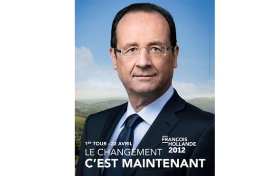 Still, that’s the background NDA chose–and to be fair, while he is the only one who has done it this year, historically, having a rural village behind you is a fairly common place thing. Look, for example, at this poster, which is Hollande’s 2012 presidential campaign effort.