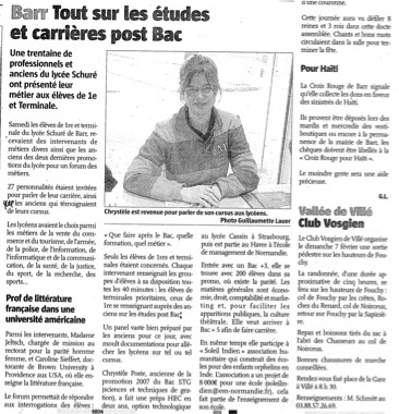The following year, in 2010, a public vocational high school (Lycée Schuré of Barr, France) invited me to talk at a career fair, after one of their faculty members heard my talk in 2009. There I met high schoolers to whom I explained what a career in higher education entailed and what gender studies research consists of.